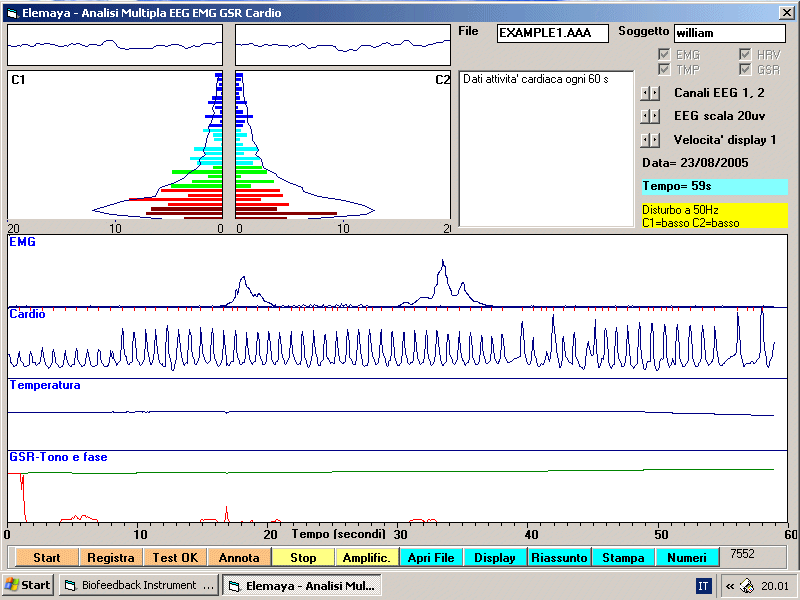 - Analisi Globale: questo programma consente di registrare tutte le variabili (EEG, EMG, Freq. cardiaca,