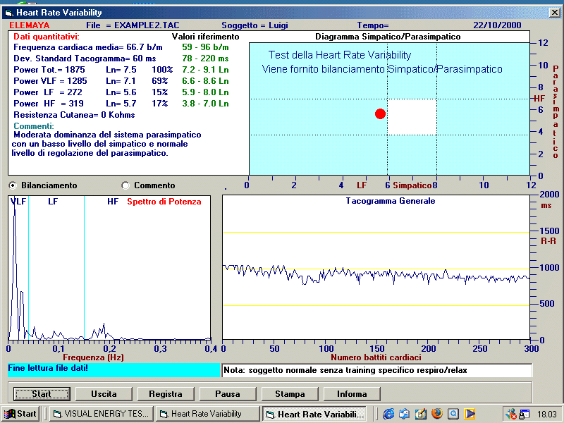 - Analisi della Heart Rate Variability (HRV): il programma permette di calcolare la attivita' del sistema